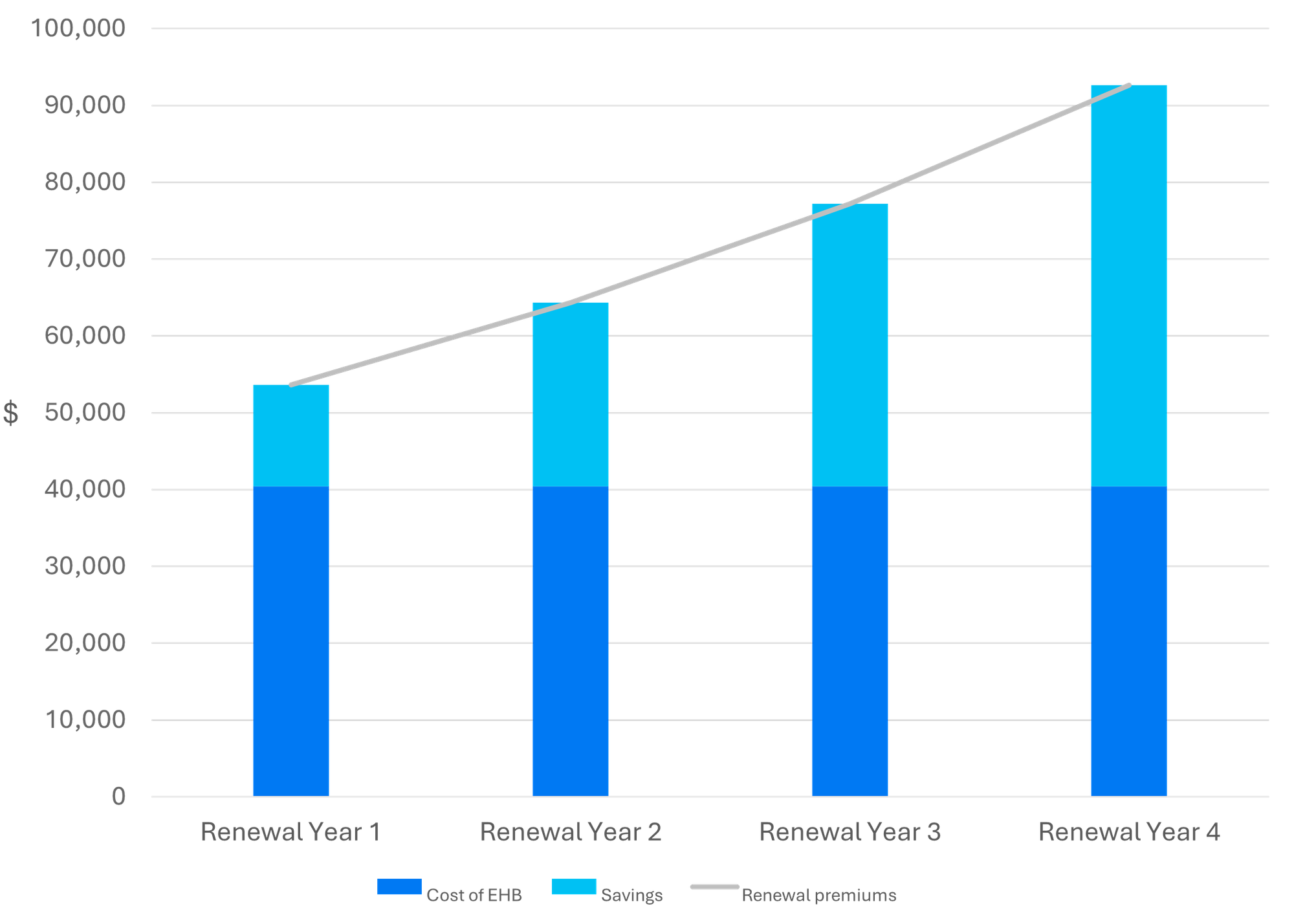 Step by step they design the plan with us to ensure it meets all their financial and business needs. So, let’s take a look at those renewal numbers from before, and see how an EHB compares.